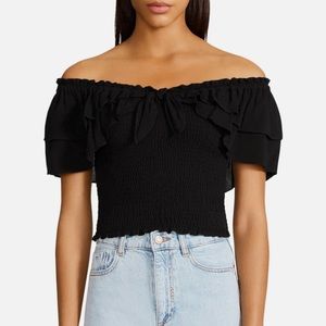 NWT BB DAKOTA BY STEVE MADDEN Did I Flutter Womens Smocked Ruffled Pullover Top