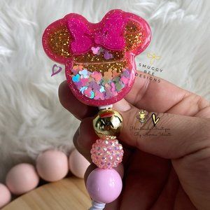 Mouse Head Badge Reel For Nurses, Minnie Badge Reel Rectactable, Badge Reel Clip, Badge Reel Id Holder, Beaded Glitter Badge Reel