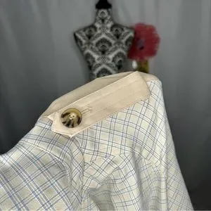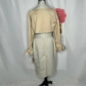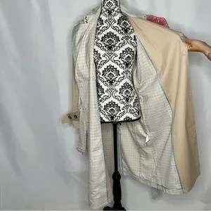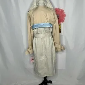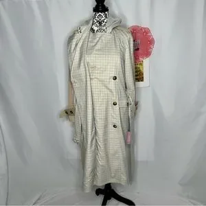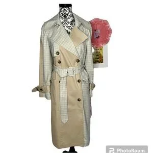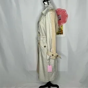 NWT Avec Les Filles Tan and Blue Plaid patchwork Trenchcoat Medium