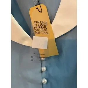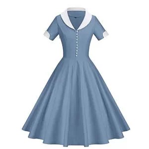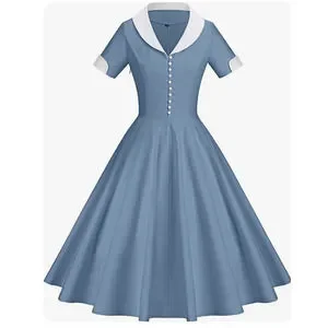 New GownTown Womens 1950s Cape Collar Vintage Swing Stretchy Blue White Dress 2X