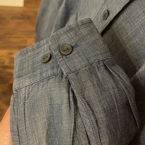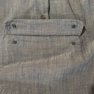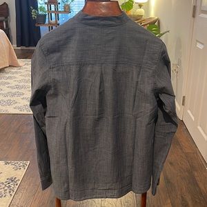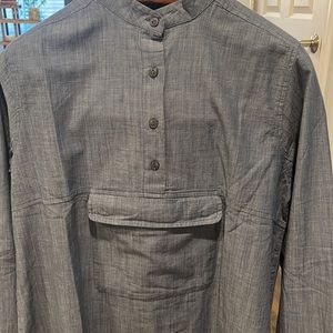NWT Mountain Hardware Women’s Camp Oasis Shirt sz M. Long sleeve with buttons at wrist. Navy Chambray. Pullover, 4 button and front 2 snap pocket.