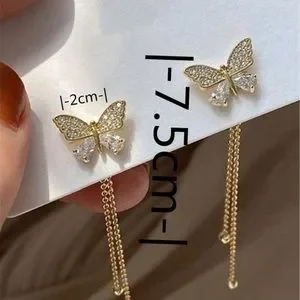 Yellow gold Fashionable Dangle Zinc alloy Rhinestone Butterfly earrings