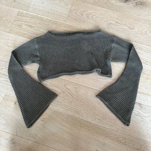 Edikted Riya Off Shoulder Knitted Crop Top in Olive Green