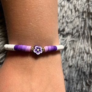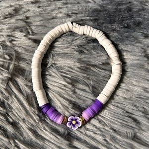 New White to Purple Flower Ombré Clay Bead Artisan Bracelet