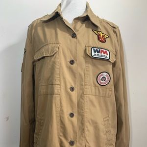 Atmosphere Shacket Utility Top Long Sleeve Cotton Tan Brown + Badges UK 10