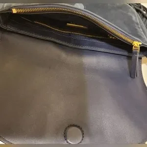 What type of material is this? It looks like suede. But I am not sure also. If purse black or Navy? Thank you