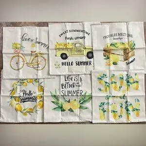 Summer Outdoor Home Decor Throw Yellow Lemon Zipper Pillow Covers Set of 6