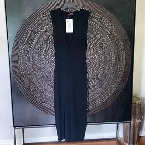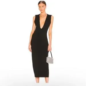 NEW Gauge81 Caesar black plunge neck midi dress small S