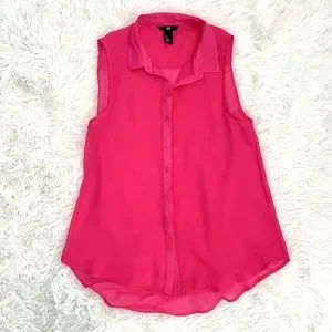 H&M Sheer Pink Sleeveless Button Down Top, 6