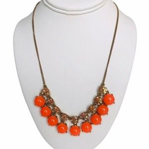 J. Crew Orange Stone and Gold Rhinestone Necklace