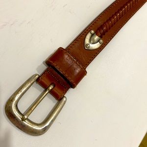 Gorgeous mens cognac leather belt with solid brass buckle & embellishments on belt