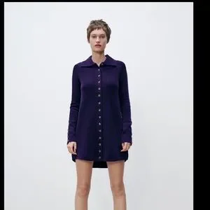 Zara Buttoned knit polo dress purple Size Small
