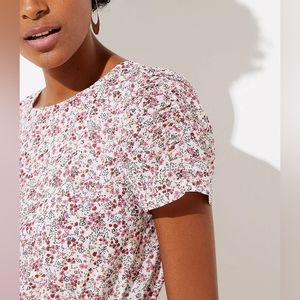 ✨ LOFT dress. Short sleeves with ruching. Pink and white floral print. Pleated Skirt.