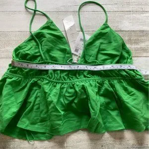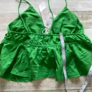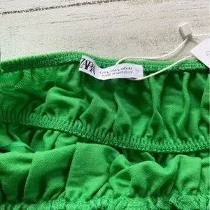 New with tags, NWT, Zara green tank top Super cute ruffled cropped tank top with some stretch both in the seams under the bust and the straps The straps are not adjustable but in my opinion the little stretch does the job True to the size of L See the measurements and the tag information in the above pictures