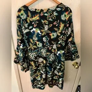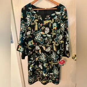 NWT - Flaunting a gorgeous floral print, this sheath dress from Anna Sui Loves INC International Concepts is finished with bell sleeves for added statement-making, stylish drama. Size large.