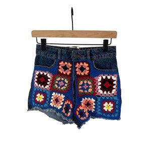 Colorful crochet details grant these denim shorts a sweetly artisanal twist, bringing texture and charm to just about any ensemble.