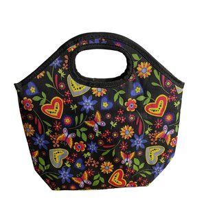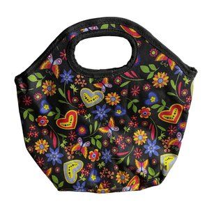 Floral and Hearts Printed Design Insulated Lunch Tote Bag