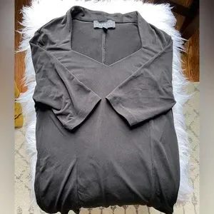 Solid black blouse with 3/4 sleeves, a thicker material, a neckline that is a sweetheart shape but has a slight mock neck around the back. Worn once for a networking professional event. Size small, has stretch.