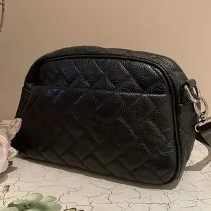 As NEW condition. Genuine leather quilted crossbody bag with adjustable strap. 2 inner pockets, one with zip and an outer compartment with magnetic button. Fully lined with signature Santa Barbara logo lining.