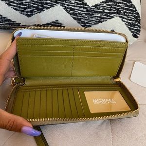 Michael Kors Jet Set Pistachio Green Travel Continental Leather Wallet