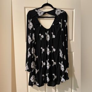 Free People Austin Mini Dress, black with embroidered cream flowers, XS. Very slightly worn, in great shape!