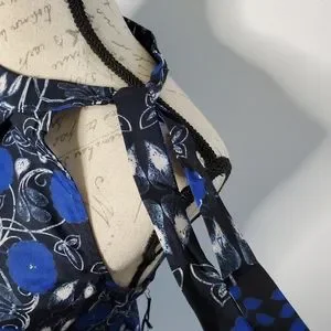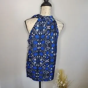 Doe & Rae blue abstract floral halter tank L . Boho. Measurements for the chest and length are in the pictures. One shoulder does tie together with ribbon. Very pretty style. Smoke-free home. If you have any questions please ask before purchasing. Thank you