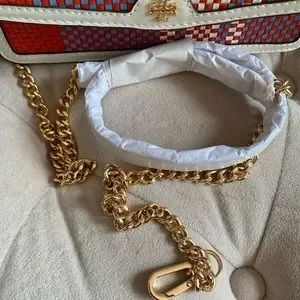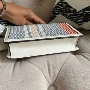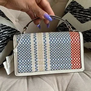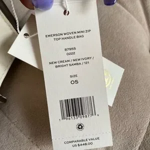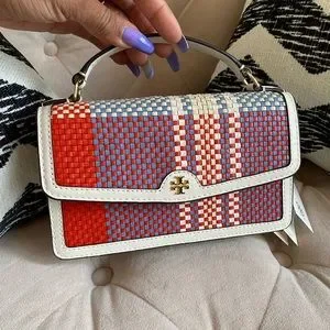 Tory Burch Emerson Woven Min Top Handle Satchel Bag New Cream Bright Samba