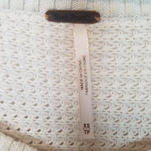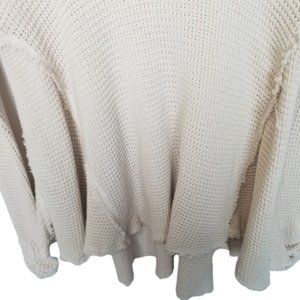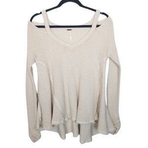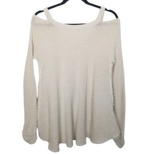 Free People Womens XS Cream Pullover Sweater Cold Shoulder Sleeves Open Knit