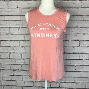 Grayson/Threads “Do All Things With Kindness” Sleeveless Top. EUC. Stretchy and super soft. Pink with white letters. Raw hems.