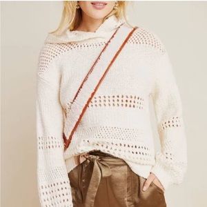 Anthropologie hooded sweater size large. Beautiful Detail with alternating knitting to create horizontal stripes.
