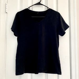 3 women’s cotton v-neck semi-fitted tees in black, navy, and green (selling as a bundle). All shirts in size medium. Excellent condition. No holes, rips, tears, or stains.