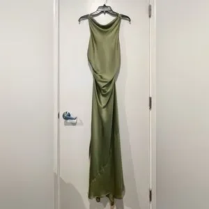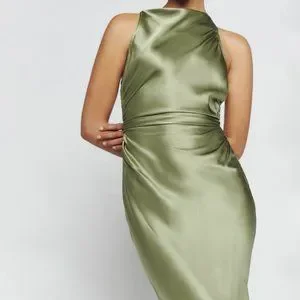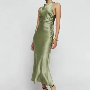 Reformation Casette Silk Dress, Artichoke 8, Occasion Wedding