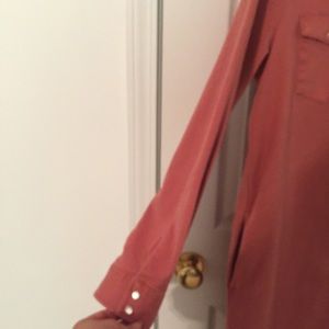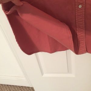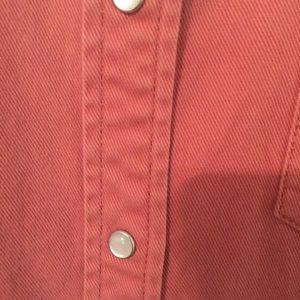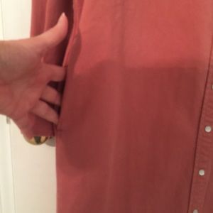 Western style dress. Pearlized snaps down front and on cuffs. Yoke in front and back. Sturdy denim like fabric in canyon rose color. Side pockets. Side slits. Wear as a dress or wear open as a duster. New-no price tag attached. Brand tag only. Win the West in this dress.
