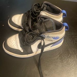Black and blue jordan 1’s. Good condition but the white bottoms are a little dirty.