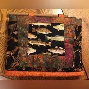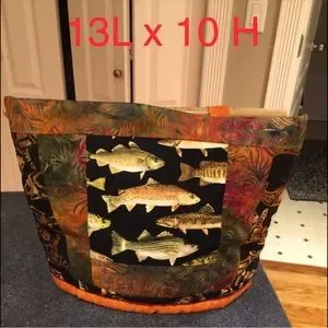 Fish themed fabric on the outside . The inside is sunflowers.