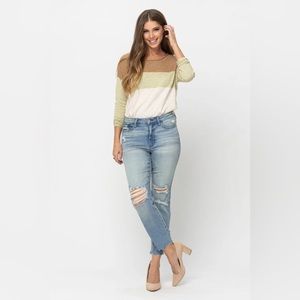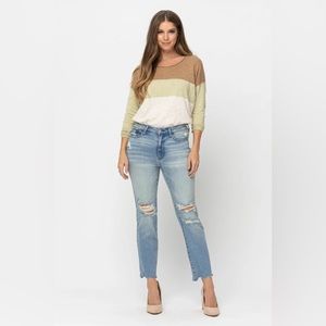 NWOT Judy Blue Tinted Wash Mid-Rise Cropped Straight Jeans 20W