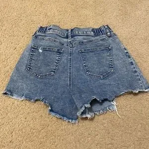 Elastic waist (stretchy) - Distressed Jean Shorts - Light Blue