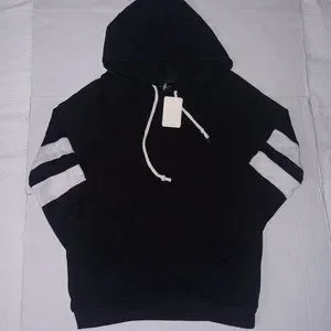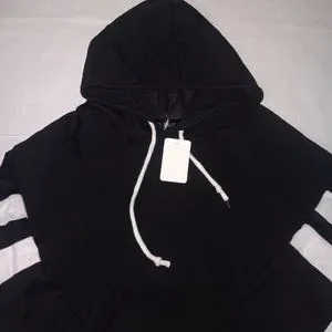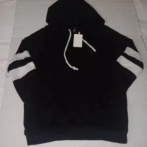 Size Medium Women's 73% Rayon/ 22% Polyester/ and 5% Spandex BIANCHI Black color SWEATSHIRT with White Stripes on the arms and Functional Drawstrings