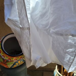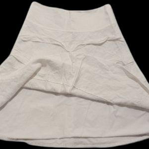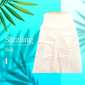 Talbots white linen layered Skirt size 6. It is fully lined. It has an invisible side zipper with a hook& eye. I machine washed it, hung it to dry, and steamed it before wearing it once. It has been washed, and it's ready to go.