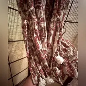 Show me your Mumu rayon Pom Pom drawstring paisley dress Red and taupe