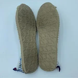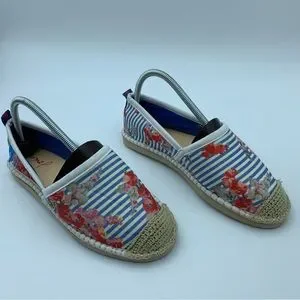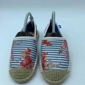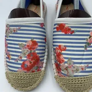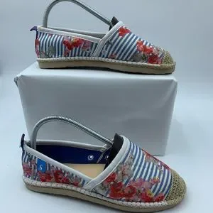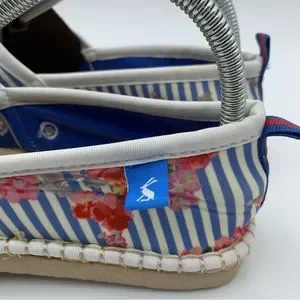 Joules Summer Espadrilles Blue White Stripe & Floral Stretch Crochet Motif UK 7