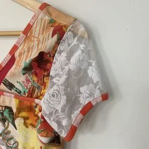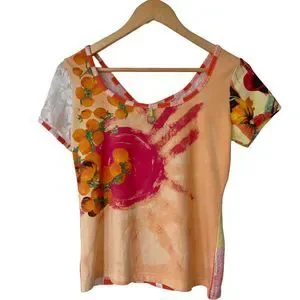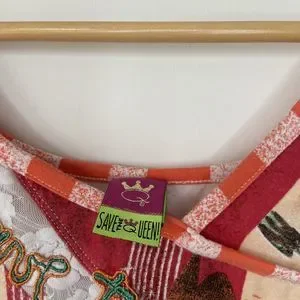 Save The Queen Vintage Short Sleeve Multicoloured Abstract Fruit Print Top L.