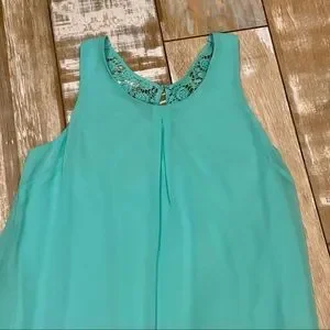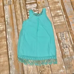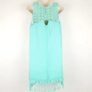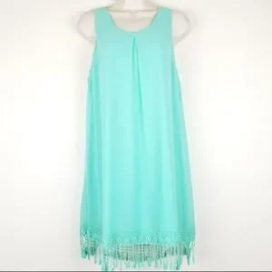 Jodi Kristopher Dress Sleeveless Mint Green Fringe Bottom hem Hook and eye closure Lined Sz medium Excellent condition worn once