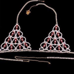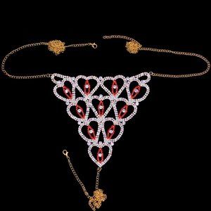 Rhinestone Heart Bikini Jewelry Lingerie Set Bling Bra Thong Crystal Body Chain