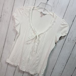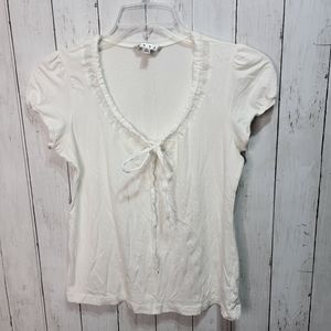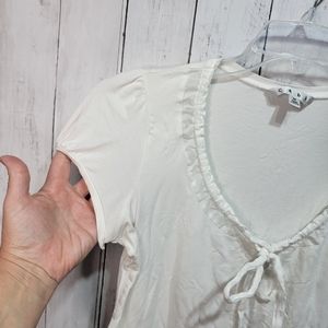 Cabi Women's White Short Sleeve Knit Shirt Tie Size Medium Style #497.