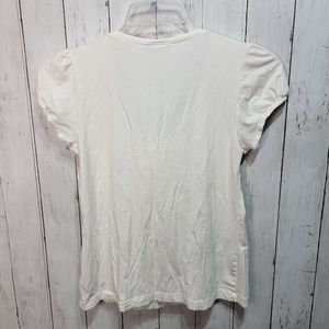 Cabi Women's White Short Sleeve Knit Shirt Tie Size Medium Style #497. Great Condition- Pre-owned. Pit to pit 19", length 23". Offers welcome