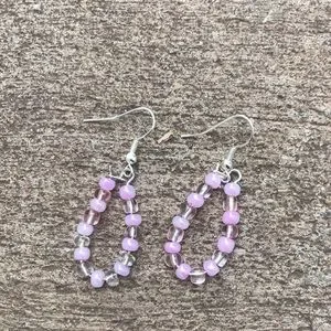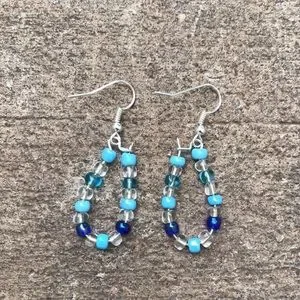 Two pairs of beaded earrings, they are both the same just different colors. One is blue and one is pink.