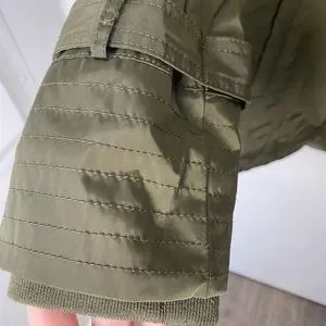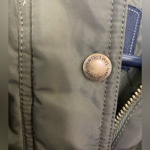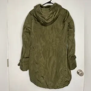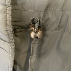 Has one grommet on the front that has come loose and a small rip under the right arm, (pictured) but other than that, this coat is in perfect condition.