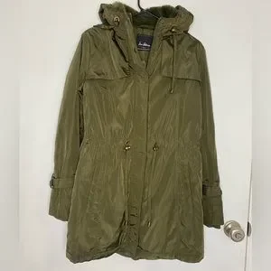 Sam Edelman Faux Fur Lined Water Repellent Hooded Raincoat, Size Small