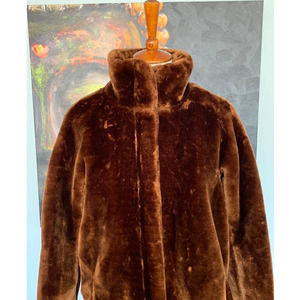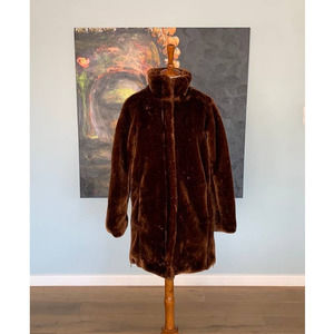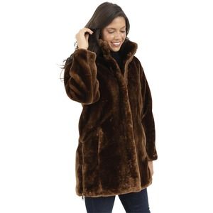 NWOT NINE WEST Plush Faux Fur Zip Hem Coat Brown Tobacco color Size M